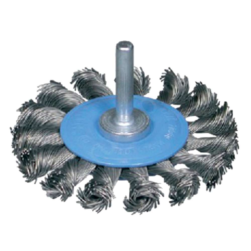 Жгутовая дисковая щетка, 75х8х15 мм, хвостовик 6 мм, стальная закаленная проволока, 0,5 мм
